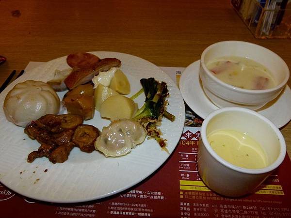 圖:依照順序取用,先從港式餐點開始,有芋泥包、魚翅餃、燻鴨、冷筍、韭菜、肥腸、杏鮑菇、蒸蛋和蟹肉濃湯,每種餐點的新鮮度和美味度都有一定水準,冷筍和肥腸特別好吃。