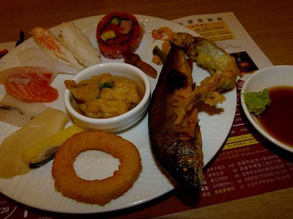 圖:再來是日式料理,有超鮮美的烤香魚、柳葉魚、生魚片、壽司、炸物和漬物。若非已經吃的太飽,否則我還想再續個二、三盤。
