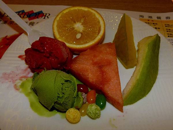 圖:收尾的是兩球哈根冰淇淋和季節水果。