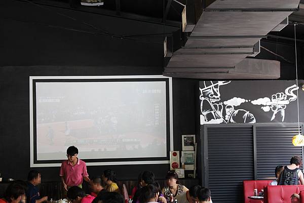圖:不愧是美式牛排餐廳,牆上掛著大螢幕,轉播運動節目。