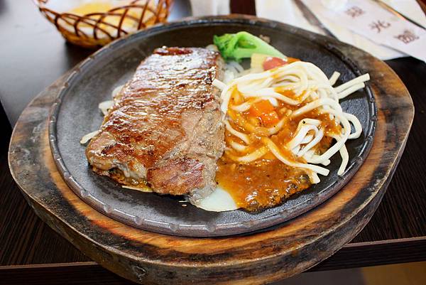 圖:家人最愛的松板牛排,330元。光看牛排厚厚一塊,就讓人胃口全開。