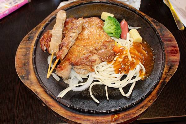 圖:雞排+鮪魚串,290元。有沒有發現,這家牛排店雖然標榜美式牛排,但感覺起來仍偏向台式牛排。不過不管排餐是那一式?這家的排餐仍然廣受肯定。