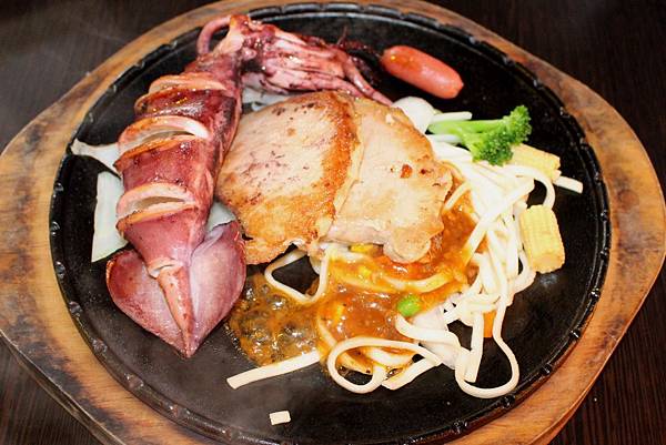 圖:我的主餐上桌,豬排+魷魚,310元。豬排一共二塊,軟中帶點勁,嚼起來很實在,很有大口吃肉的快感。