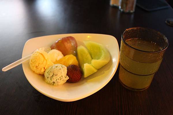 圖:吃的飽飽飽,最後再來一點水果加冰淇淋,讓今天的午餐有個完美的結尾。